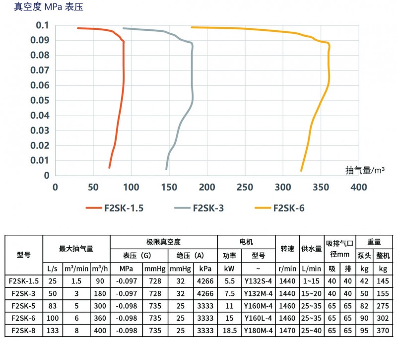 F2SK系列與FSK系列設計類似,同樣采用了徑向葉輪,它特點是增加了一個副葉輪,可以將真空度由-0.093提升到-0.098MPa。